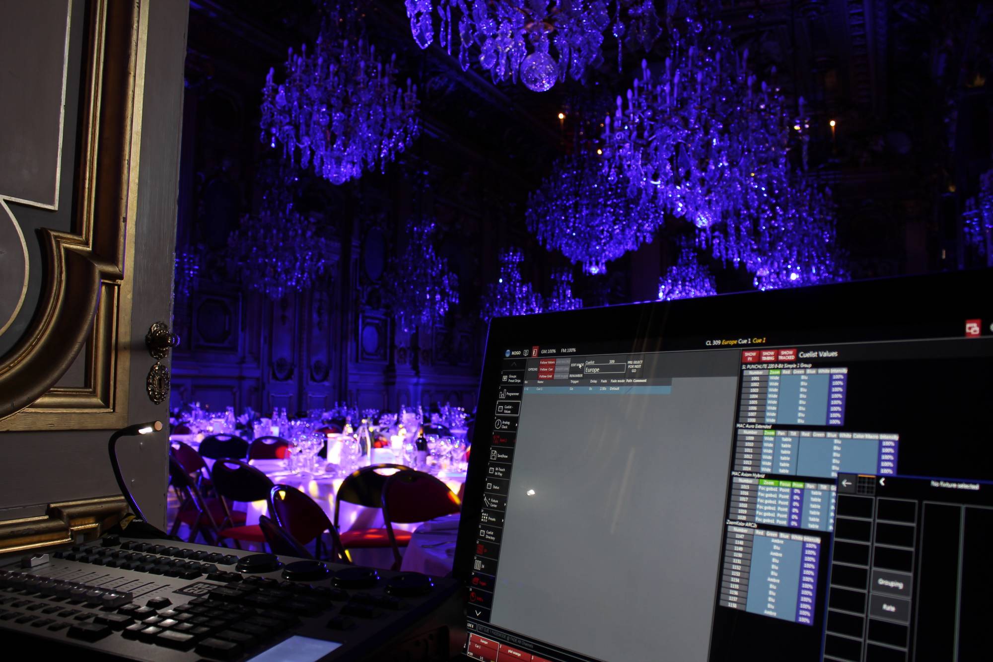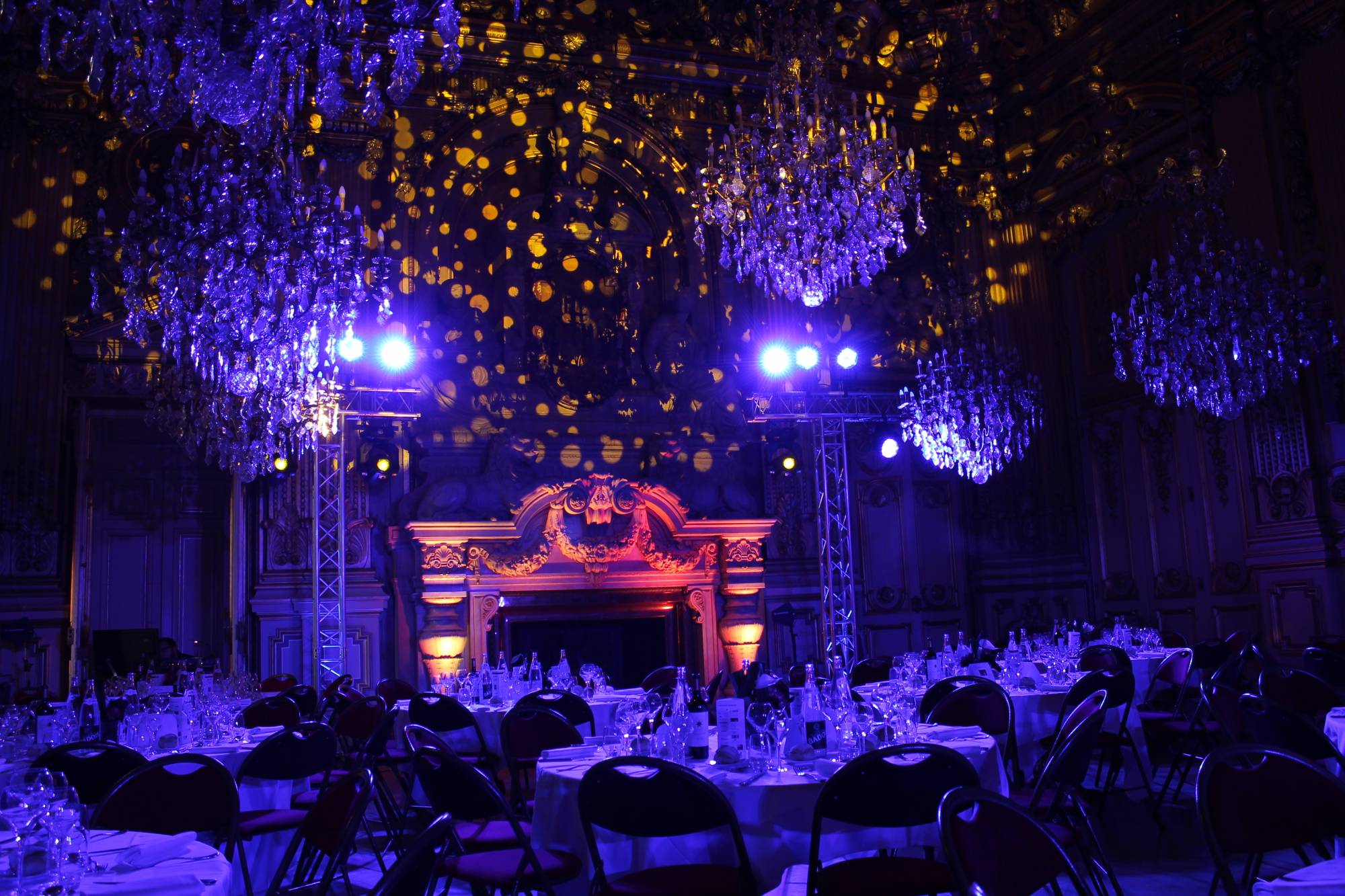 L'équipe de L&Db s’est occupée de toute la conception et de la mise en lumière du salon pour le dîner., ainsi que de la distribution électrique pour le traiteur. Nous avons créé plusieurs tableaux lumineux qui ont évolué au rythme de la soirée. 4 tableaux étaient prévus : un pour l’entrée des invités, un pour le plat, un pour le spectacle et un pour le dessert.