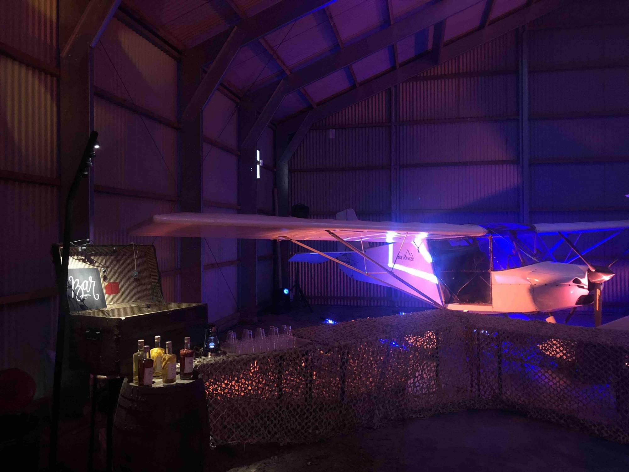 Pour ce 10ème anniversaire, 80 personnes étaient présentes pour profiter de cette soirée basée sur le thème de l’aventure ! Piste d’atterrissage, ULM, filet de camouflage, décor en bois… Une ambiance semblable à celle d’Indiana Jones.