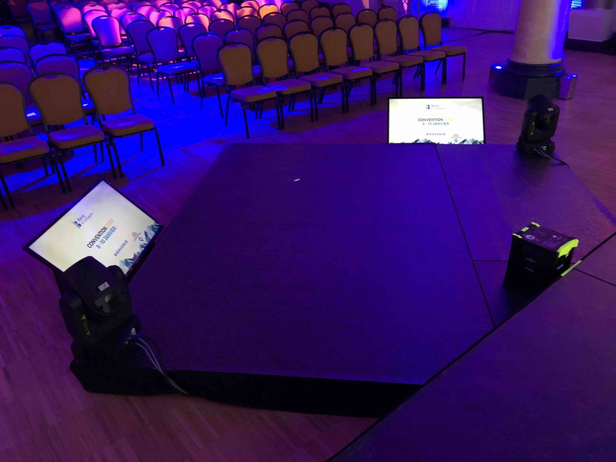 Les intervenants prenaient place sur une scène de 8x3m, avec une avancée en forme de diamant de 3x3m. Pensez au confort de vos intervenants, avec du matériel de scène et des accessoires adaptés. Spécialiste dans l’équipement événementiel, L&Db vous propose l’installation de scène, de praticables et d’escaliers, pour des événements professionnels. Ici, ce matériel scénique était personnalisé, tant au niveau de la taille, que de la couleur. Notre équipe fait en sorte de vous proposer du matériel scénique en cohérence avec votre manifestation.