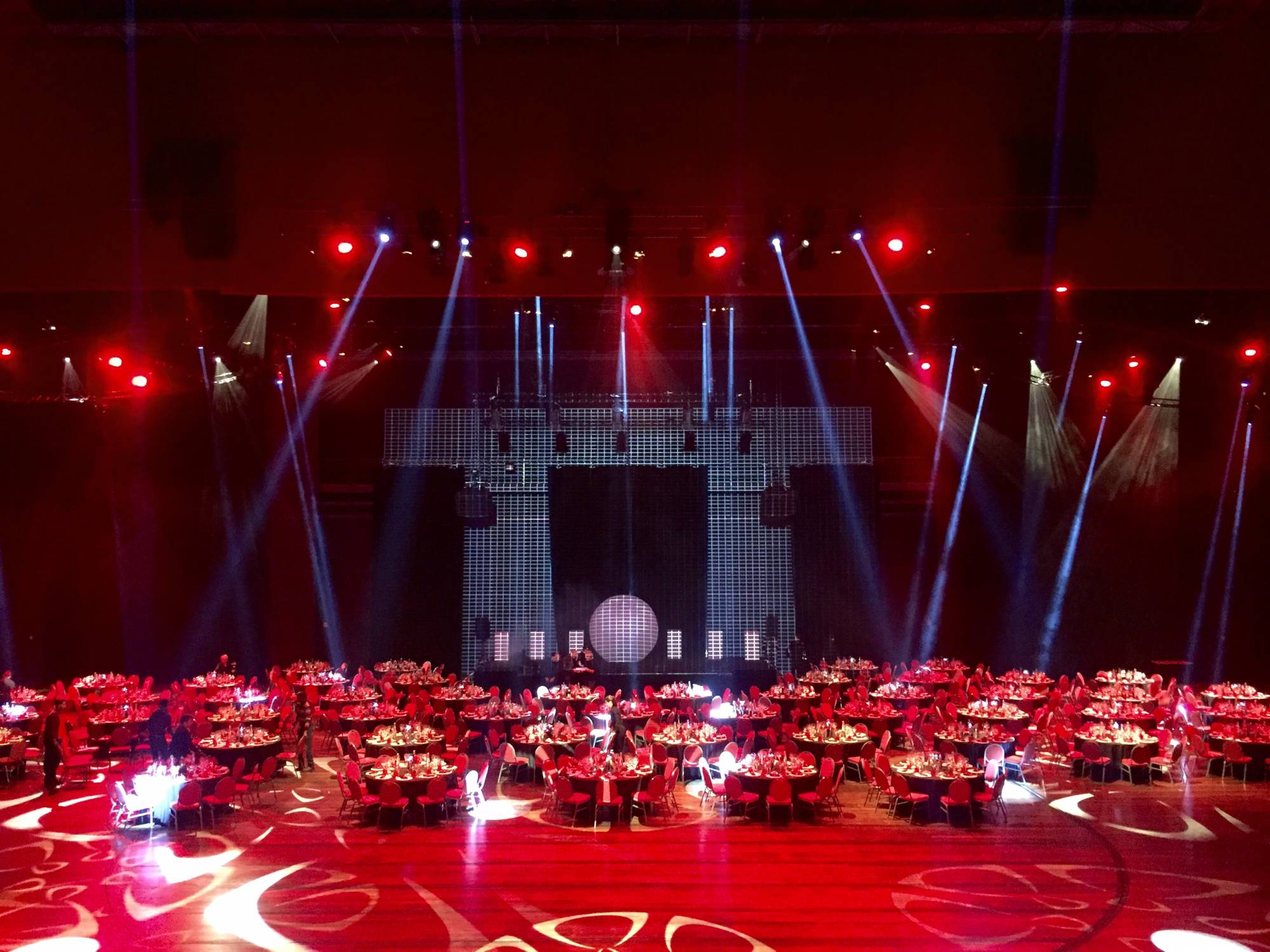L'équipe de L&db s'est occupée de la création (implantation et choix des projecteurs) et de la régie lumière. Pour mettre en valeur l’espace dîner et l’espace show, nous avons piloté un peu plus de 150 projecteurs avec notre console Martin M6. Différents tableaux lumineux ont été crées pour la convention, le repas et le spectacle.