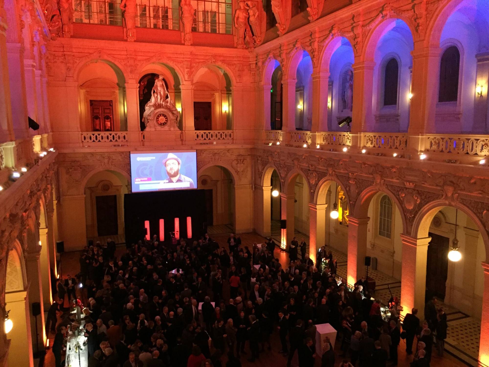 Le 16 janvier 2018 se déroulait les vœux du président de la CCI Lyon Roanne Saint-Étienne au palais de la Bourse à Lyon. Cet événement s’est déroulé en deux temps : les vœux au personnel et les vœux aux personnalités lyonnaises. Pour cette occasion, cocktail dînatoire, discours, et diffusion vidéo étaient au programme.